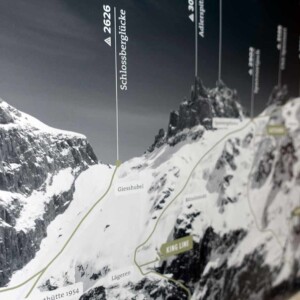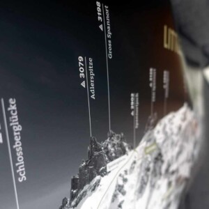 Beschriftet mit den Namen der wichtigsten Gipfel und dessen Höhequoten. Siehe Tab „Beispielseiten“ für mehr Eindrücke.
